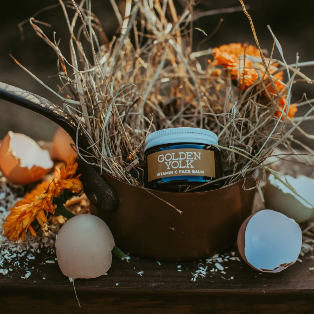 It’s the joy of a perfect jammy yolk, reimagined for your best skin ever. Our bestselling line is getting the ultimate antioxidant boost: say hello to Golden Yolk Vitamin C Balm! With a deep orange hue and silky texture, this nourishing anti-aging balm is the embodiment of the sunny pastures that nourish our happy hens and, subsequently, your complexion.