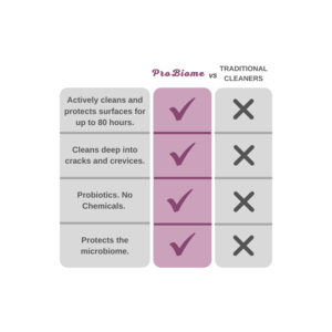 Each cleaner is carefully designed to protect and nourish the microbiome in your home. ProBiome uses gentle aromatic extracts, for a subtle clean scent without harsh fragrances. Most impressive? Each spray contains millions of beneficial, hard-working bacteria that continuously deep-clean the surface as long as there is dirt and grime for them to gobble up. No conventional cleaner does that!