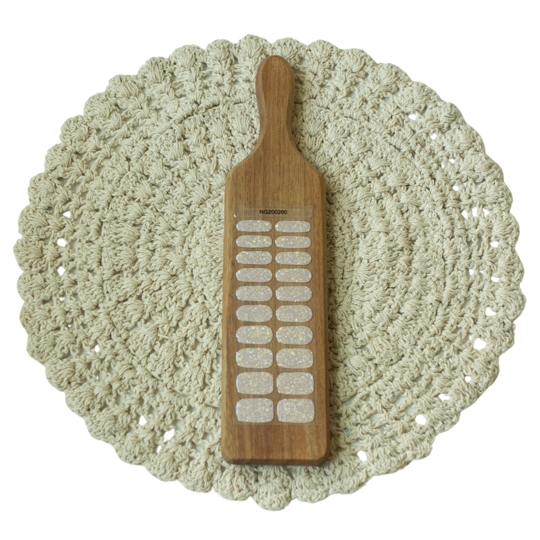 Apply oil (any skin safe oil will work) all around the nail wrap, then use the wooden stick to lift up the edges. Allow the oil to get underneath the wrap while using the stick to slowly lift wrap away from the nail.