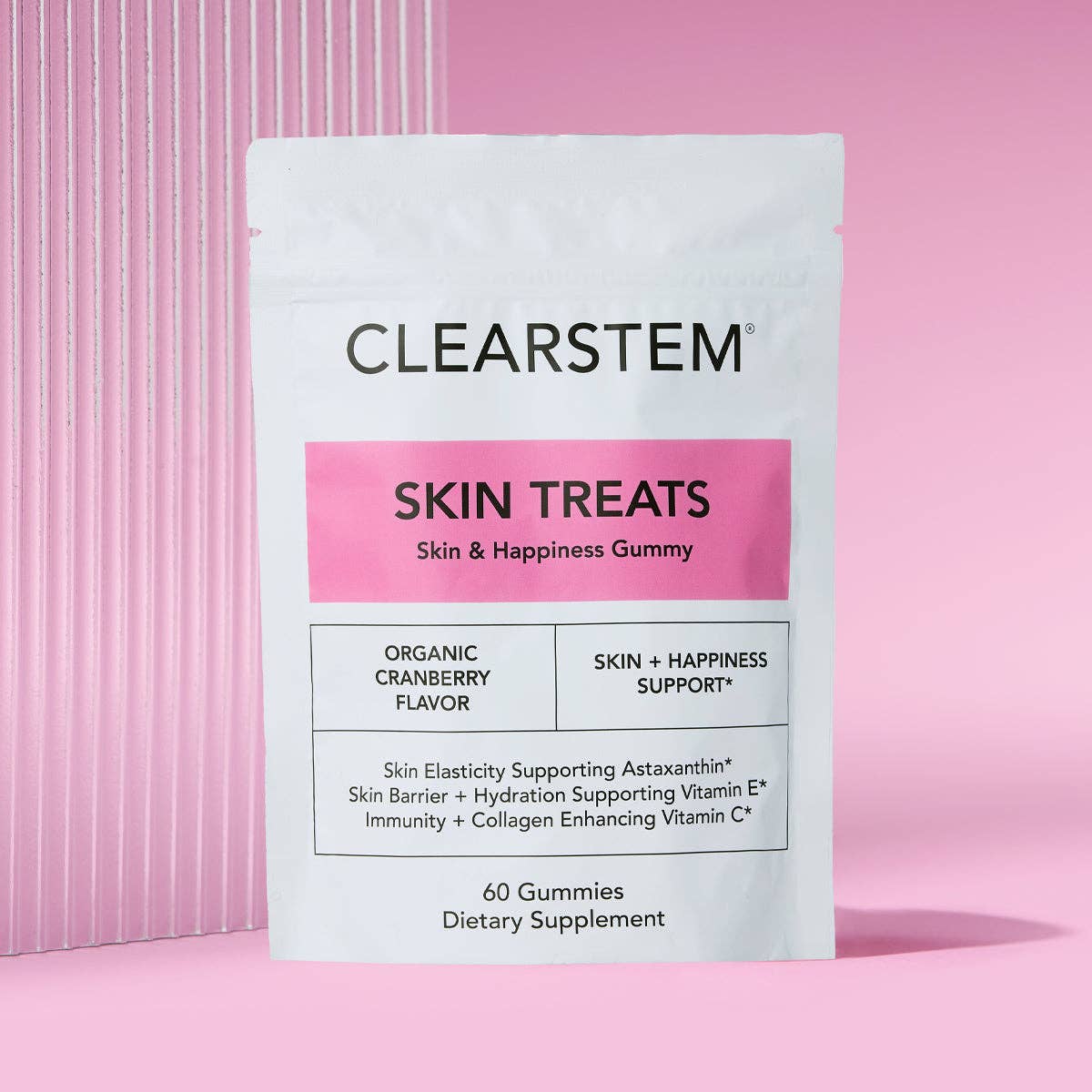 SKIN TREATS are loaded with skin-friendly antioxidants that we don't often get in our daily diet so they are the perfect complement to your current skincare routine. This formula supports skin elasticity and is meant to add joy to your life and your skin journey in a meaningful and fun way, all in a juicy cranberry bite. SKIN TREATS is meant be an alternative to candy or caffeine when you need a little perk in your day and is an absolute favorite within the CLEARSTEM team!