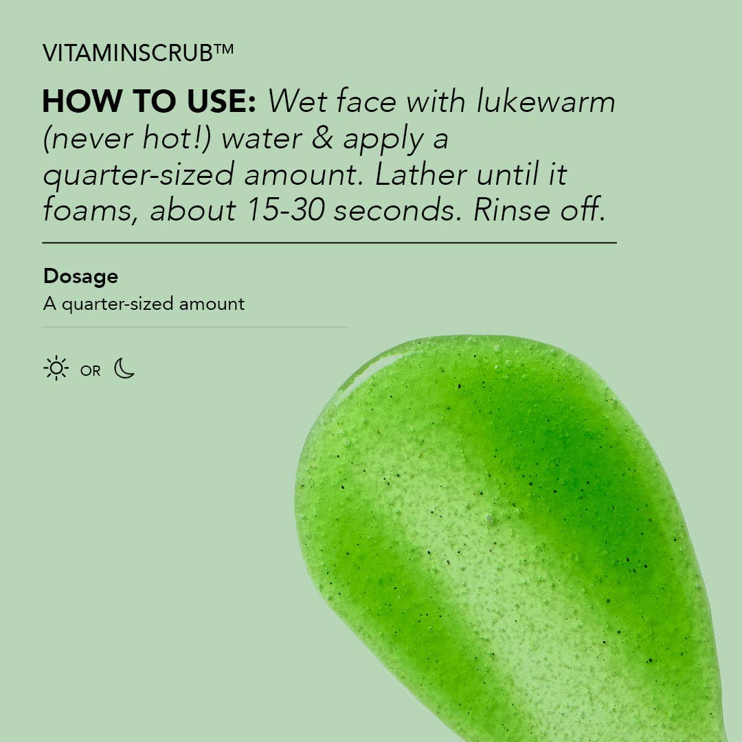 Scrub the day away and bask in the glowy results! VITAMINSCRUB is an exfoliating cleanser featuring Vitamin C, Green Tea, calming Chamomile, and Bamboo Pearls. It gently polishes away dead skin cells, helping to unclog pores, stimulate collagen, and brighten the skin. Great for all skin types including dry, mature, sensitive, blemish-prone, combination and normal.