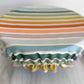 This fabric is so bright and beautiful! These bowl covers are perfect for making bread or covering a salad, a plate of cookies, etc. They fit snuggly on a 12-14inch bowl, and also fit on a casserole pan.