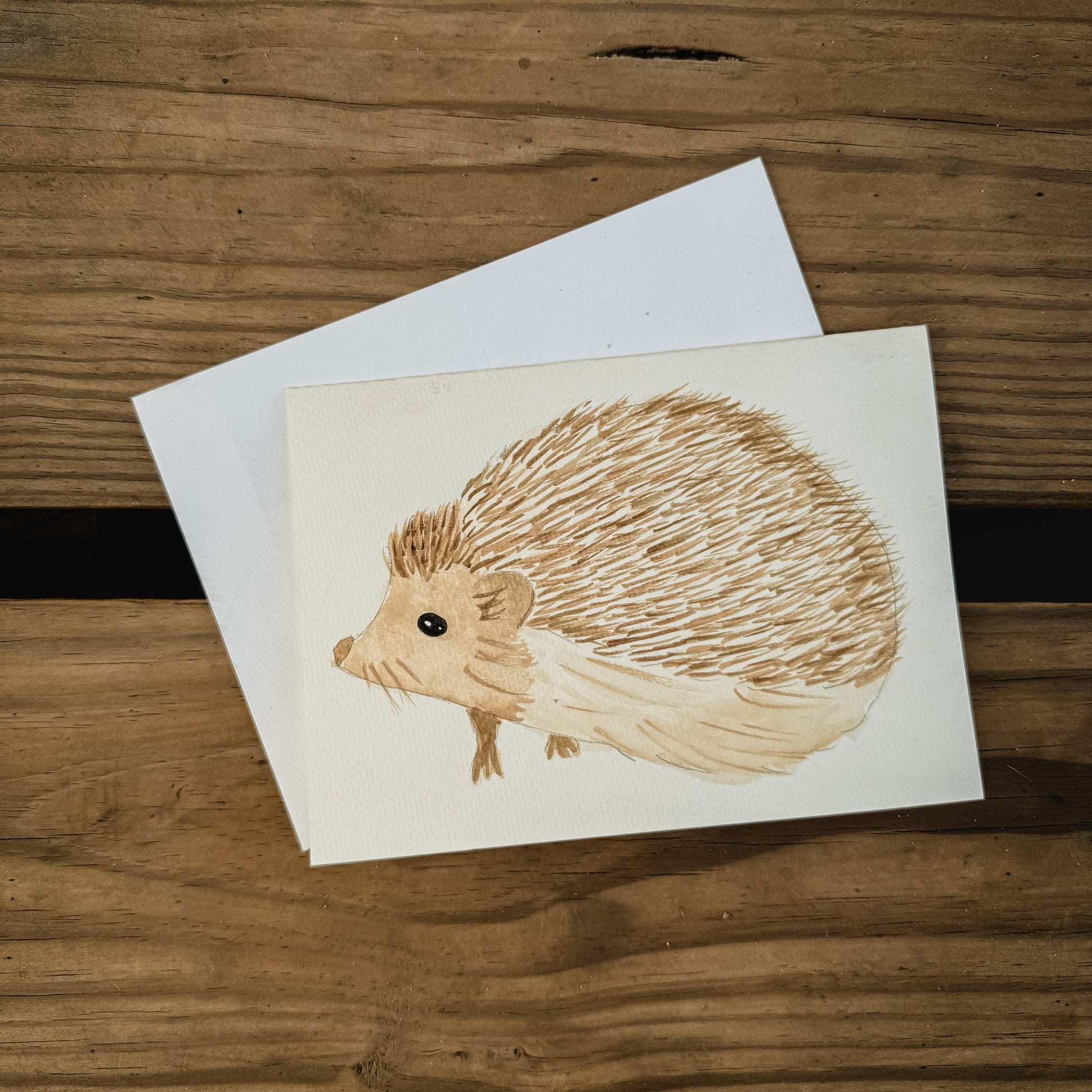 Includes: a hand painted 5" x 7" watercolor card with blank interior, and a blank envelope inside a sealed plastic slip.