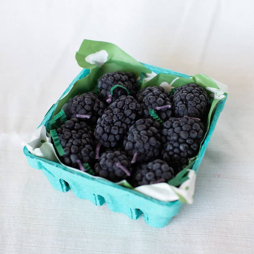 Illuminate your special moments with a touch of warmth, nostalgia, and an irresistible dash of cuteness. 10 beeswax blackberries per box! The packaging includes the adorable berry basket with green crinkle cut inside the brown kraft box.