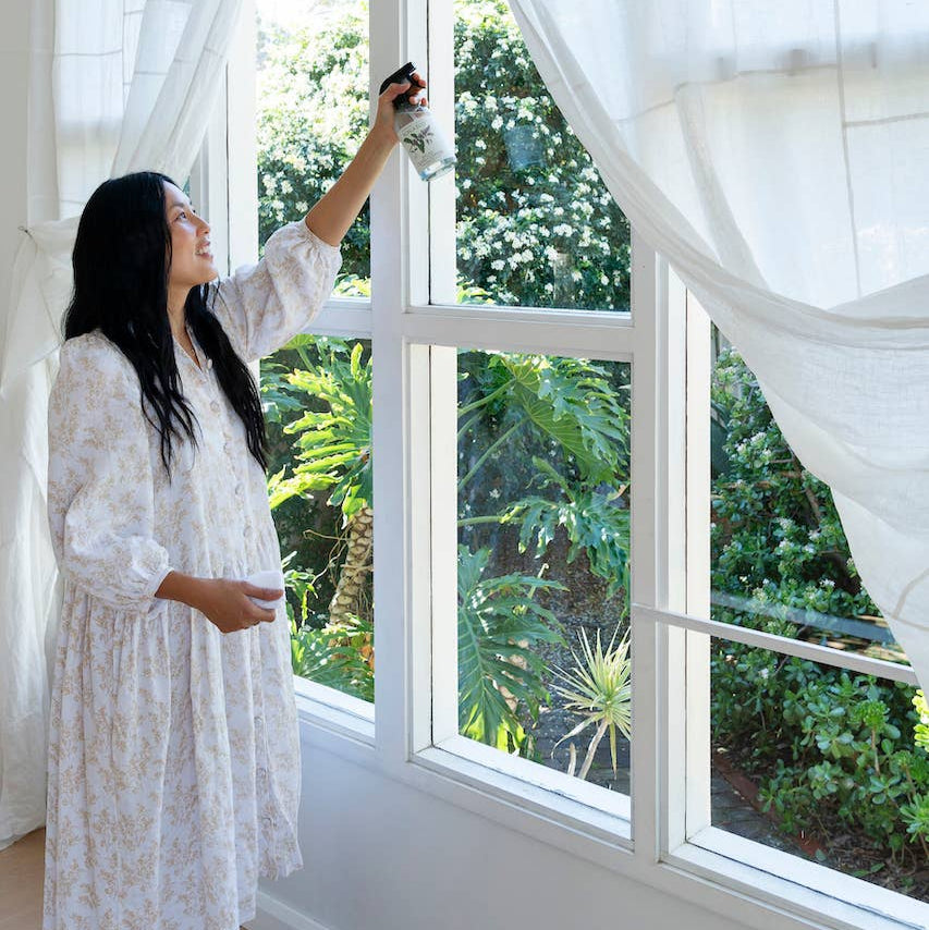 A glass sparkler and insect repellent in one cool, peppermint hit…let nature’s antiseptic buff up your windows as well as your spirits.