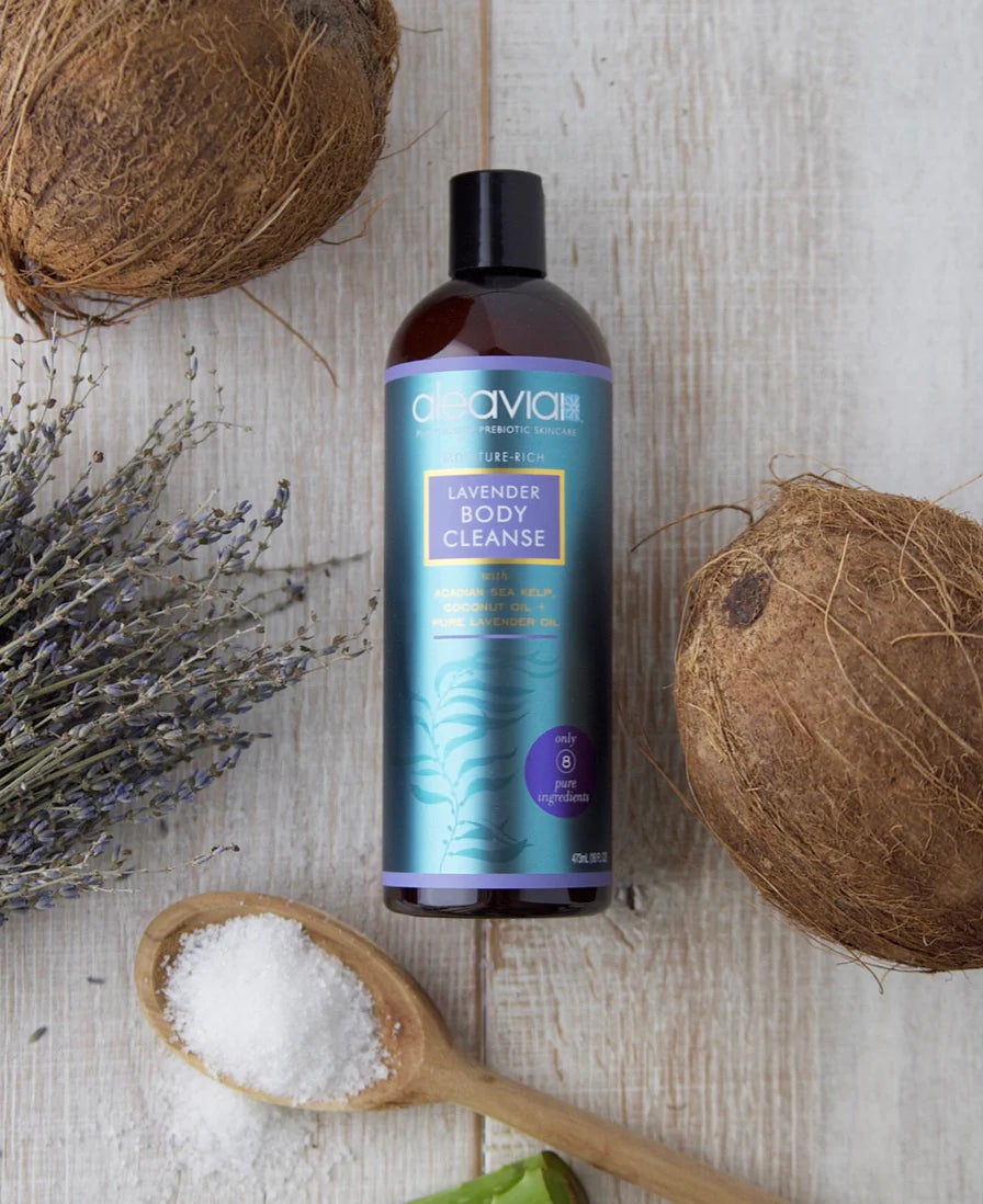 Restore your skin's microbiome using nutrient-rich prebiotic power! This body wash is beautifully scented with calming lavender, and gently cleanses away dirt and toxins without stripping your skin of its natural oils and upsetting the balance of healthy bacteria. Silky and plant based, Aleavia's enzymatic prebiotic body wash is home-free of chemicals, artificial fragrances, endocrine disruptors, and irritants that are so commonplace in typical cleansing products. You can lather away, with peace of mind!
