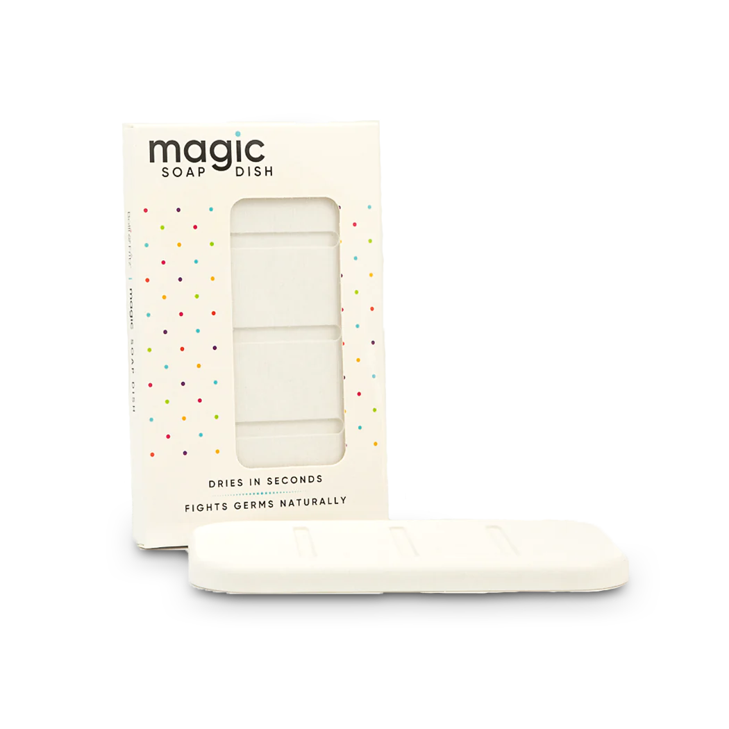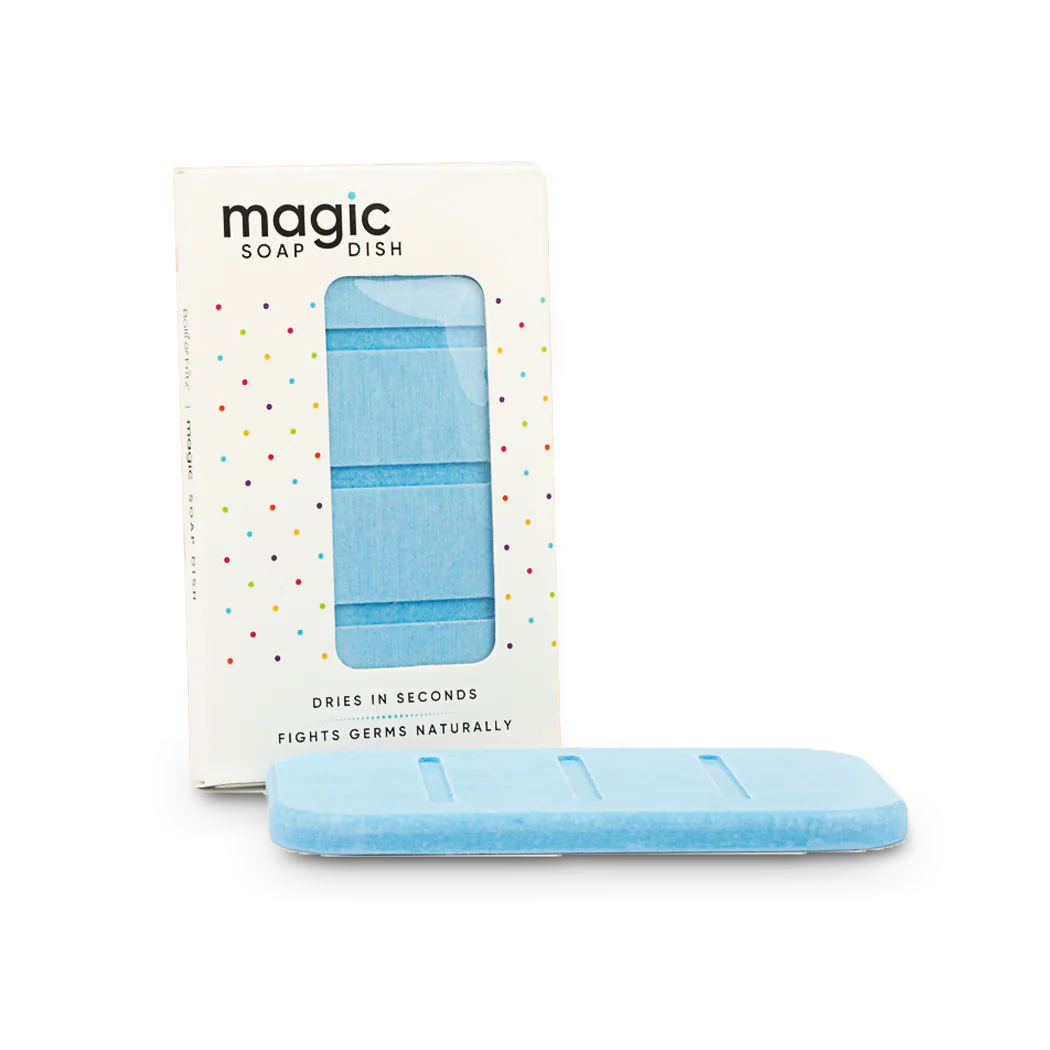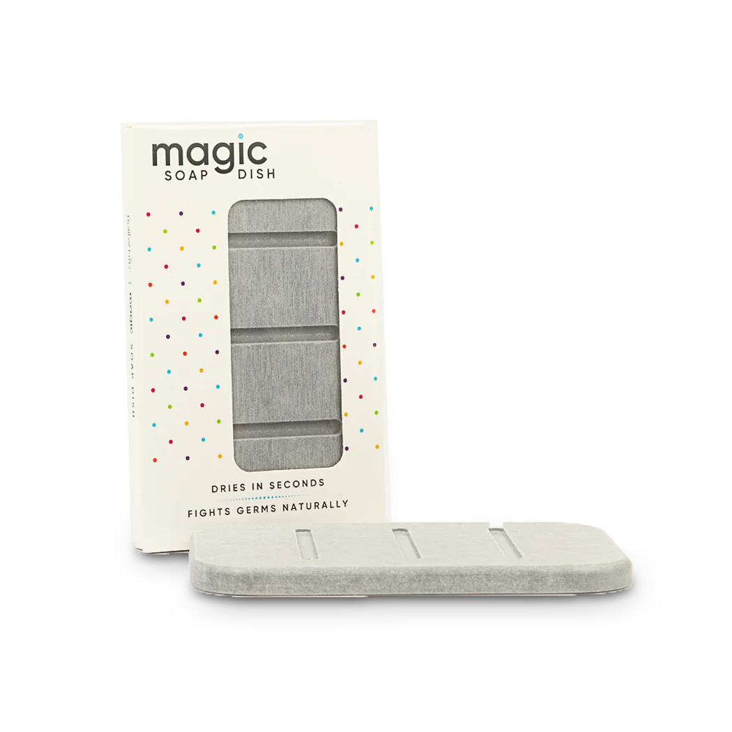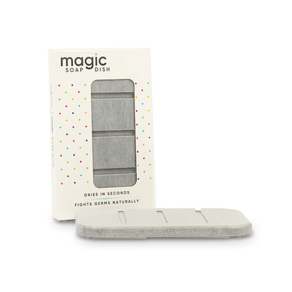 A soap dish that dries in a flash and doesn't leave you with mushy soap can't be real, right? Wrong! This magic soap dish is the magic solution using light-weight, ultra-absorbent diatomite (also known as diatomaceous earth) and natural plant fibers to keep your soap fresh and firm. With anti-slip grooves and sterile, anti-bacterial properties, this durable soap dish quickly absorbs water, leaving your soap dry and hygienic every time.