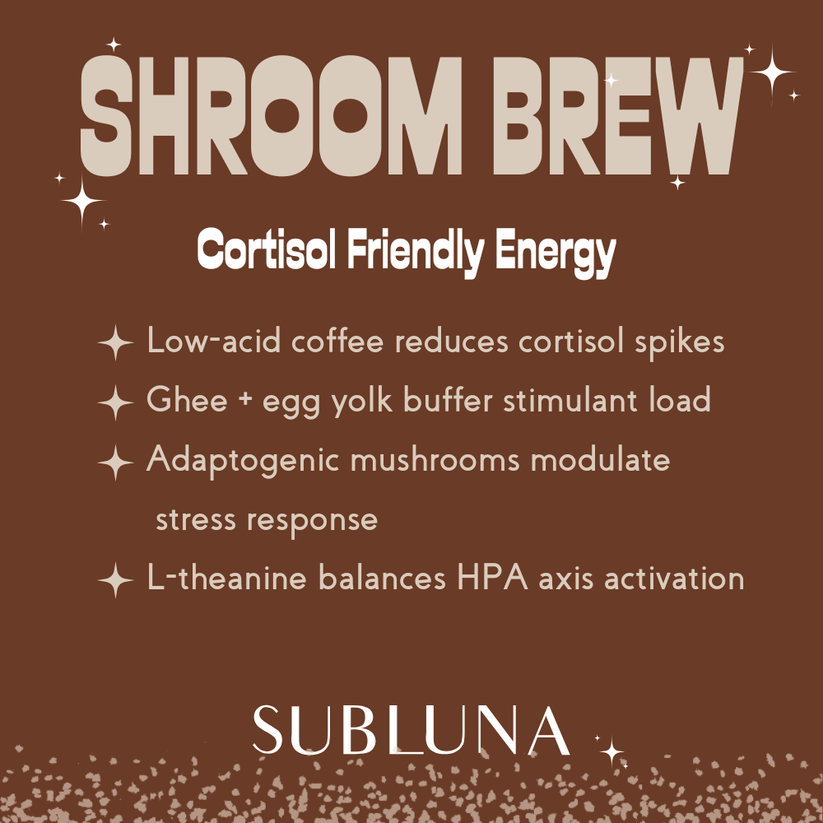 With just 40mg of caffeine per serving, plus L-theanine, pastured egg yolk, grass-fed ghee, and pearl powder, Shroom Brew is gentle on digestion and supportive of cortisol balance. The added supporting ingredients help the body to metabolize caffeine better. Their synergy is full spectrum support for the body, working to support gut health, immunity, cognitive function, blood sugar balance, inflammation, natural beauty, and more.