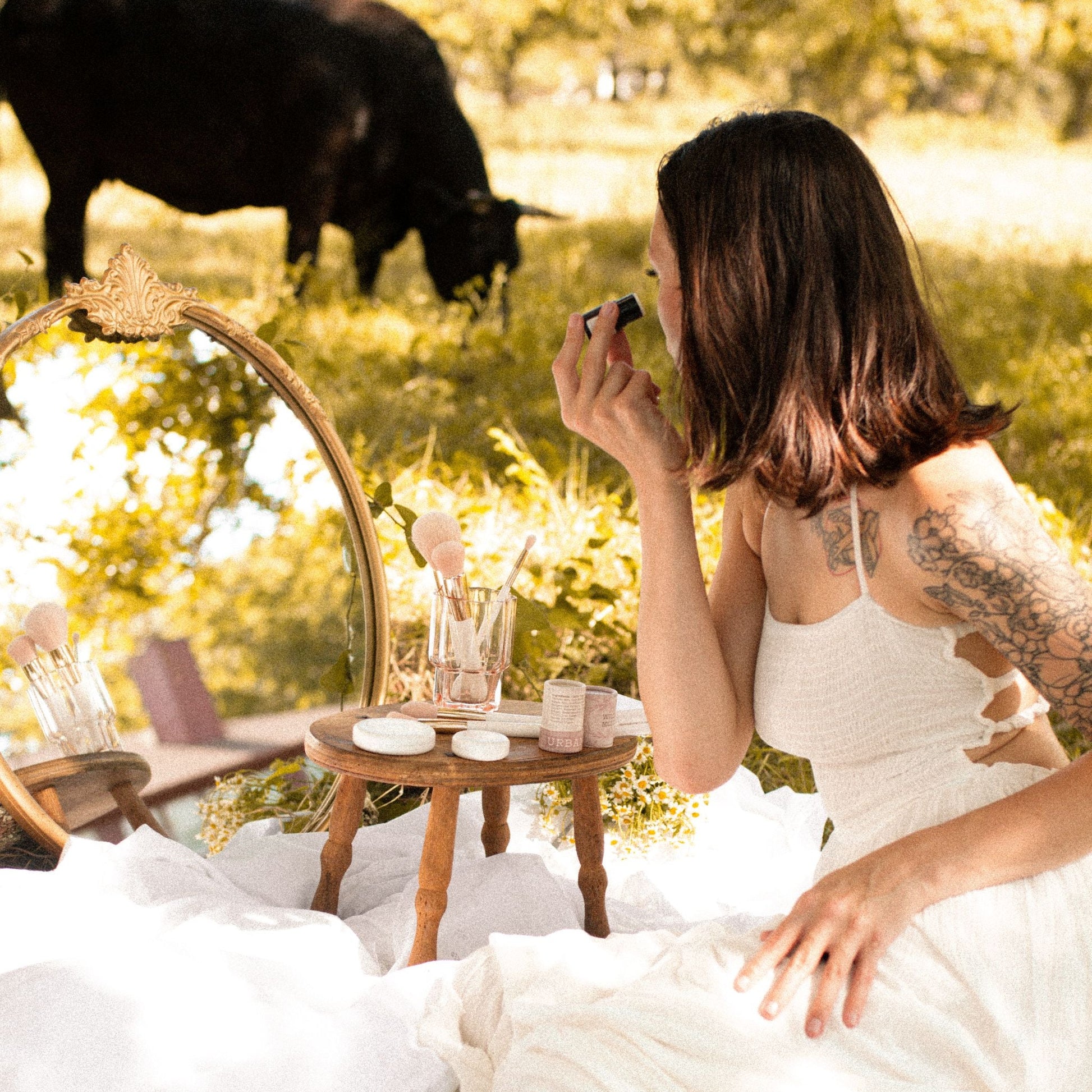 Twist up your Wild & Free Multi Stick and swipe directly onto the areas you'd like to add color, structure, or glow. Blend in with your fingertips for a soft, natural finish, or use a brush for a more polished look.